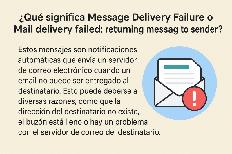 Uno de los mensajes más frecuentes que reciben los usuarios de email es el famoso "Message Delivery Failure" o "Mail delivery failed: returning message to sender".