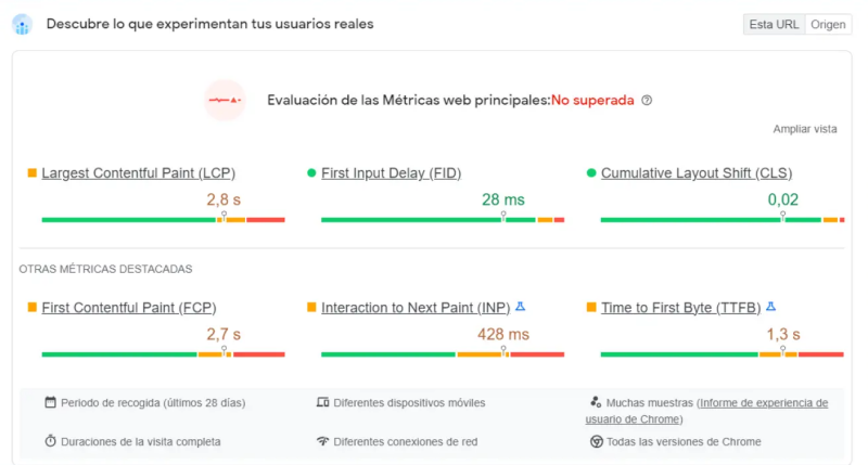• TTFB (Time to First Byte) y FCP (First Contentful Paint) también se incluyen.